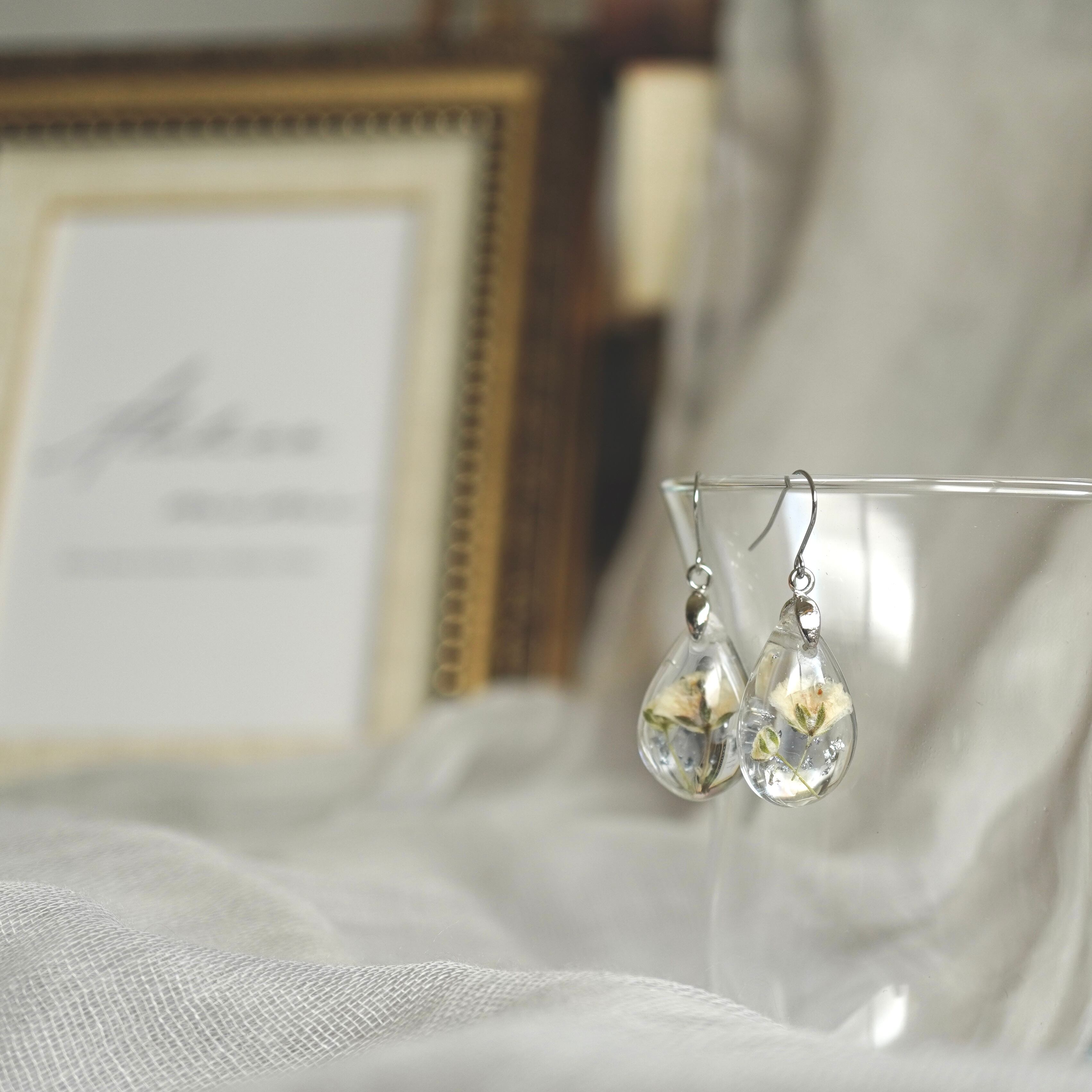 ・天然の花材を使用しているため、退色や気泡が見られる場合がございます。