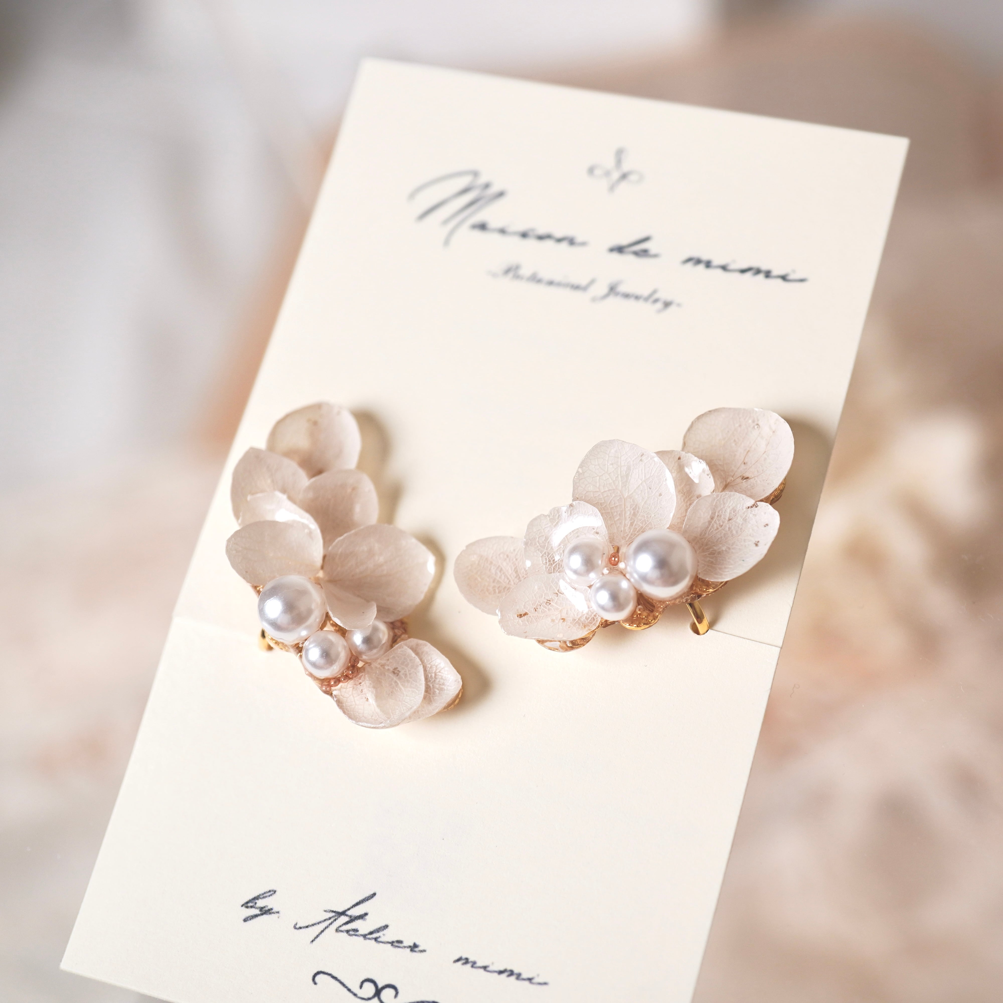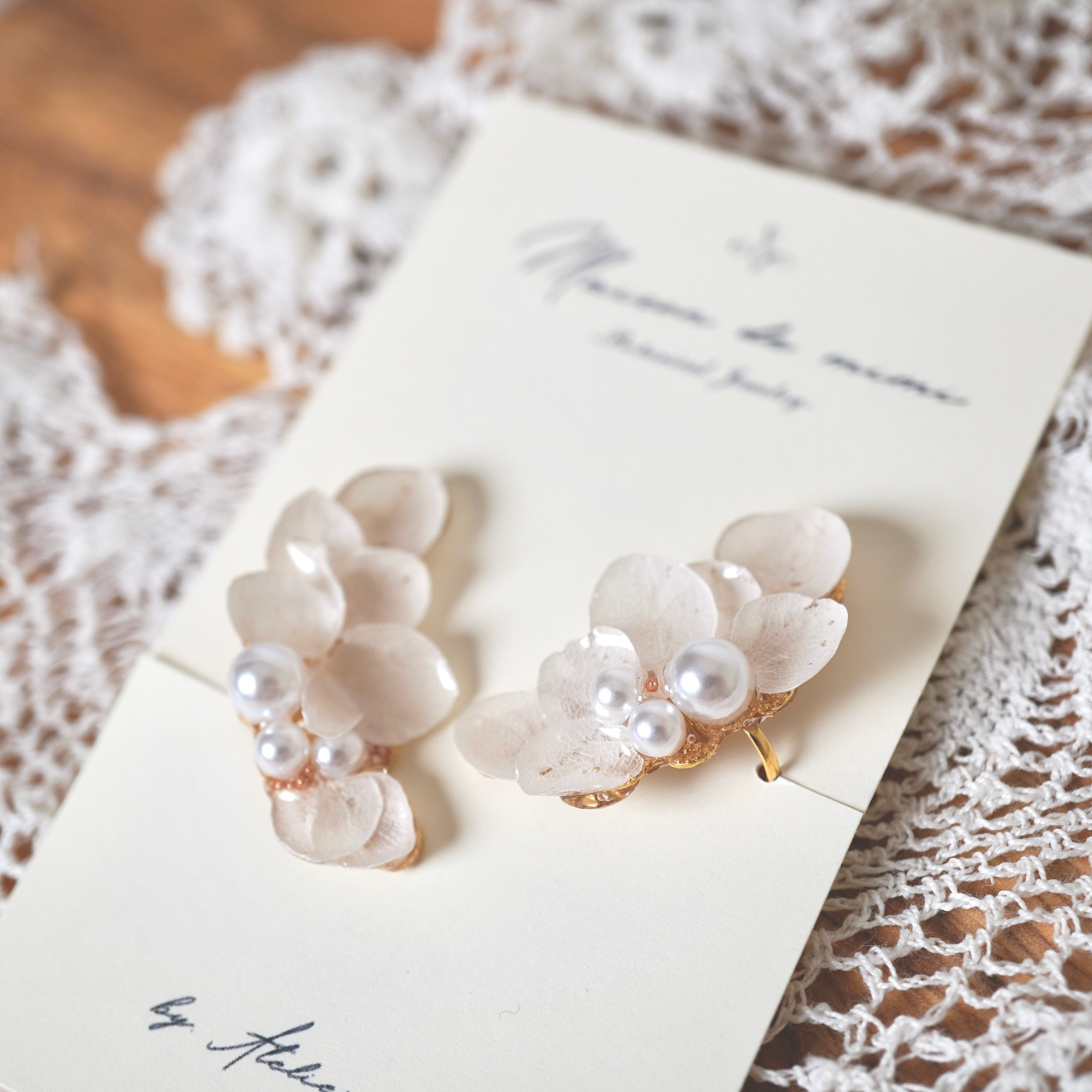 【 Maison de mimi 】 Perle blanche|純白(紫陽花とパールのイヤークリップ) メゾンドミミ Ateliermimi アトリエミミ